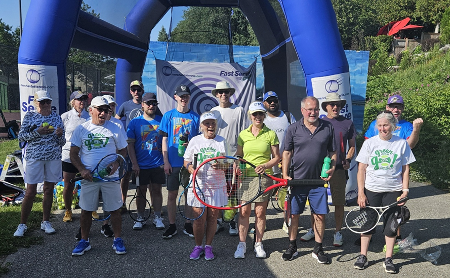 On June 29 the Ontario Tennis Association (OTA) Traveling Road Show came to the Kincardine courts. The Smash Cage was setup for people to measure their serve and stroke ball speeds. In addition, a lesson was given to 18 players. Players received a variety of OTA gifts including t-shirts, hats, overgrips, wrist bands, and water bottles. The fastest serve recorded was by Kartik Kelkar at 155 km/hr. However, he broke a string in the process!